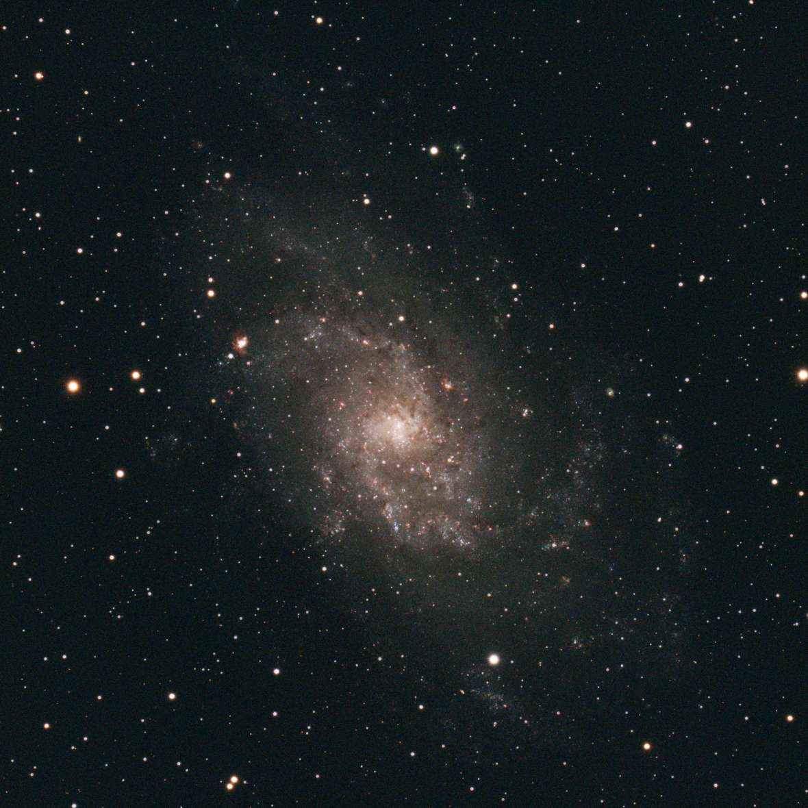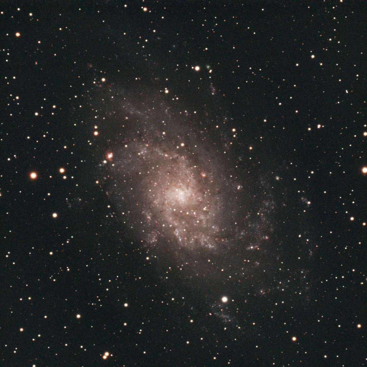 Focusing too soon after setting up is often a waste of time, as the focus will inevitably shift slightly once the telescope has adjusted. On top of this, the ambient temperature will usually change gradually during an imaging session. Below is a comparison of two images of the galaxy M33 in Triangulum, showing the impact which being even slightly out of focus can have on the quality of the final image.