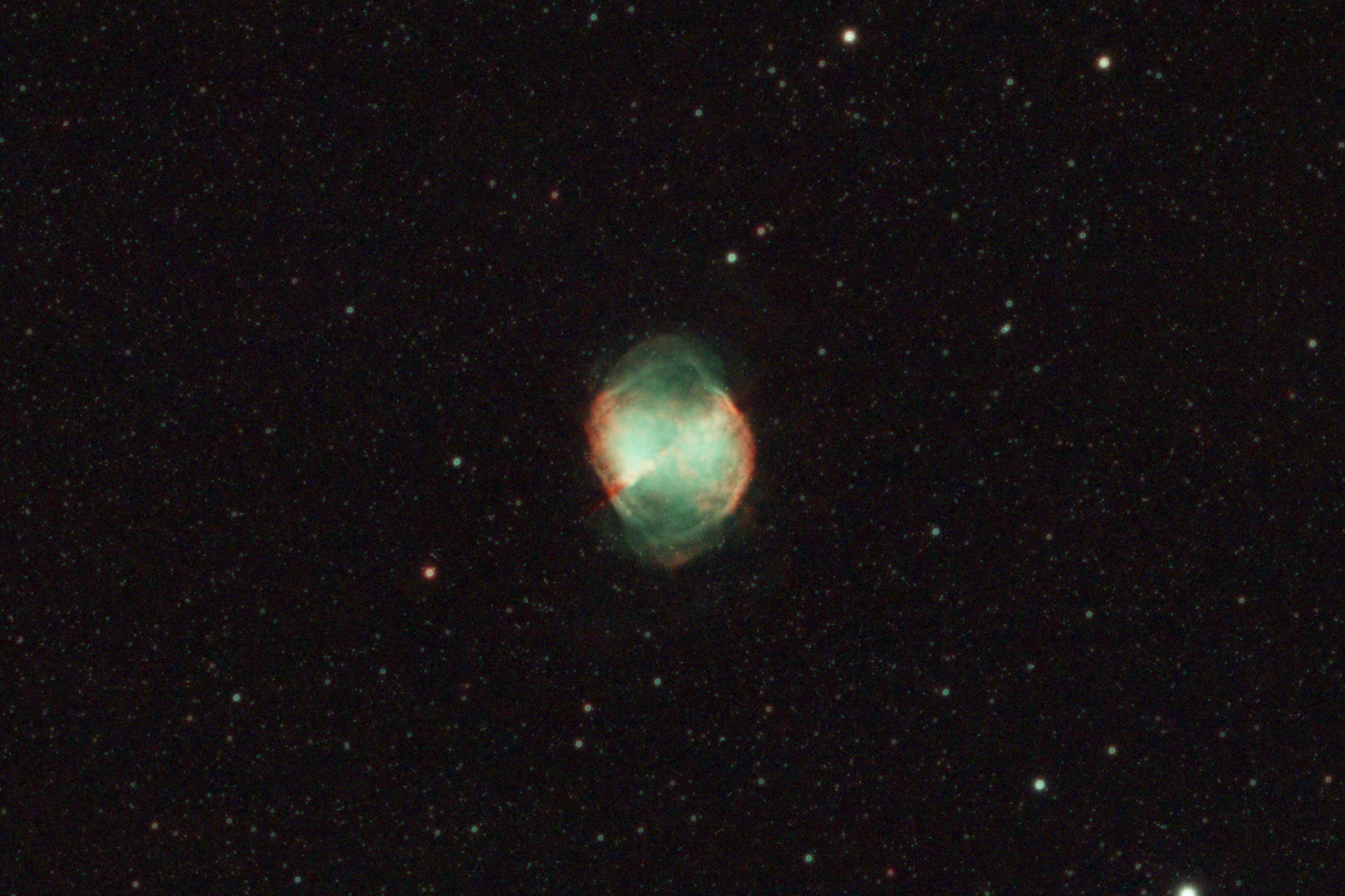 The dumbbell nebula was the first known object of its type when it was discovered by Charles Messier in 1764. It is a nearby example of a planetary nebula, so named because they were often mistaken for planets by observers at the time, owing to their small apparent size, relatively high brightness, and roughly circular shape. M27 is particularly bright, and also makes a great target for visual observation.